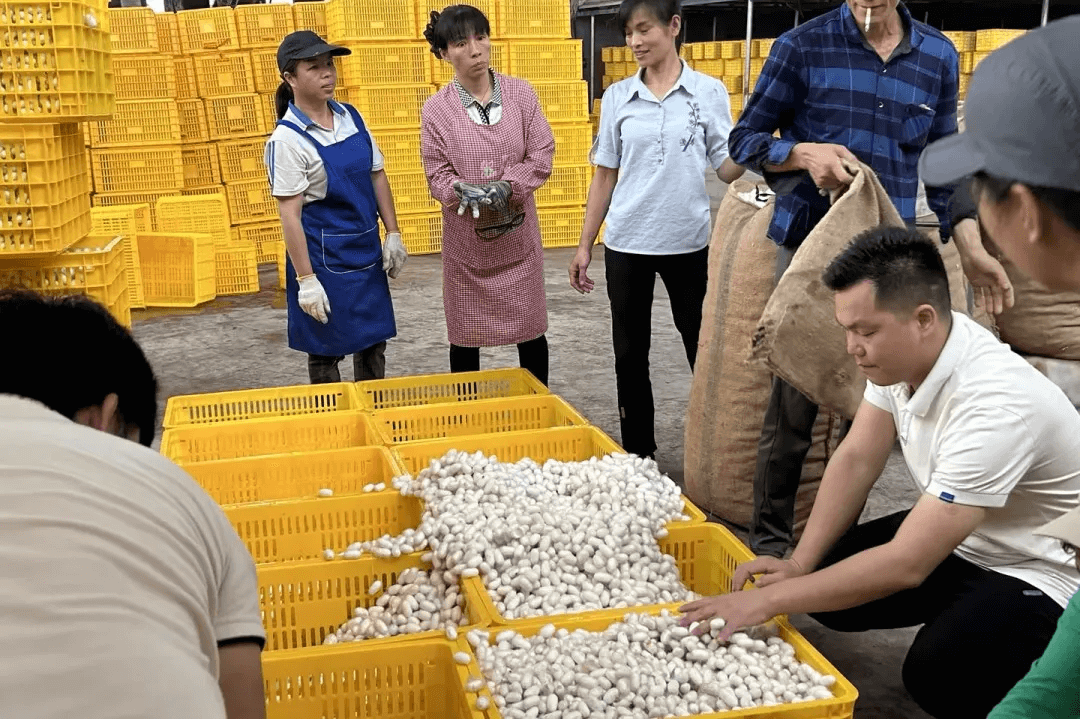 在茧丝产业链,,中农网不仅联手广西70%的丝绸生产厂搭建起全国最大的桑蚕茧丝绸交易平台,,,,实现茧丝绸企业从入库、、、、信息发布、、、、合同签订、、、支付结算到出库的一条龙服务,,,还搭建起丝纺产业数智化云工厂平台,,,,为生产加工企业提供订单排产、、、生产调度、、生产管控等服务,,,,通过全流程的过程控制与实时生产数据为生产管理提供决策辅助。。。。其推出的以“茧农+电商平台+银行+缫丝厂”为四大参与主体的产、、、售、、、、支付“区块链+农业”新模式,,,解决了丝厂向茧农“打白条”的痛点,,使茧农可在最短时间内收到茧款,,,已惠及广西河池等地茧农12000余户,,28家缫丝厂和绸缎厂进驻平台。。。