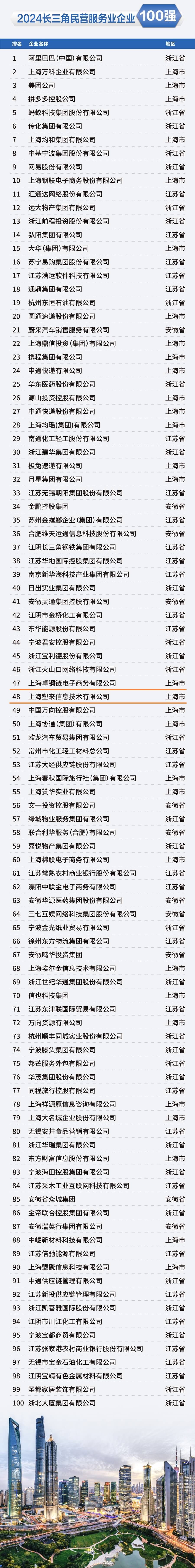 11月28日,,2024长三角百强企业排行榜发布。。。尊龙时凯旗下卓钢链、、、化塑汇再度入列“2024长三角服务业企业100强”、、、、“2024长三角民营服务业企业100强 ”,,,同期入列榜单的还有阿里巴巴、、美团等知名企业。。