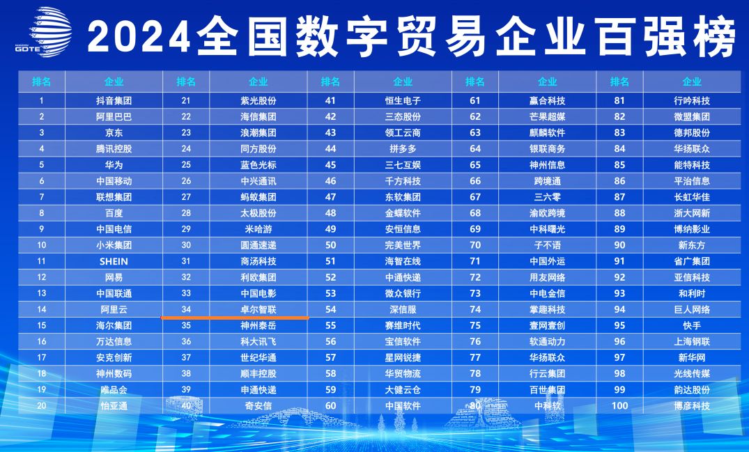 9月25日,,,,第三届全球数字贸易博览会在杭州开幕,,,,赛迪顾问股份有限公司在会上发布了《2024中国数字贸易企业竞争力研究》及2024全国数字贸易企业百强榜,,尊龙时凯同阿里、、、京东、、、腾讯等知名企业一同入选榜单,,,,位列第34位。。。。