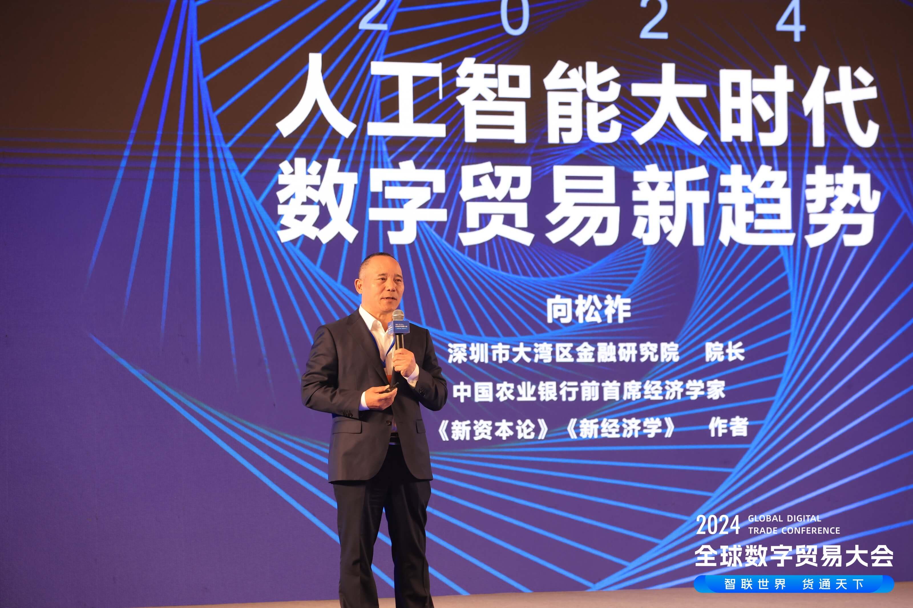 著名经济学家、、、、大湾区金融研究院院长向松祚,,,以《人工智能大时代和数字贸易新趋势》为主题进行了交流。。他表示,,,人工智能、、、大数据、、云计算、、区块链、、数字货币这些创新技术,,,成为数字贸易最强大的推动力量。。。和魏建国的观点一样,,,他建议,,,,应加快推动制定数字贸易技术标准和行业标准,,促进数据交易、、、数据共享等合规流动和交易。。