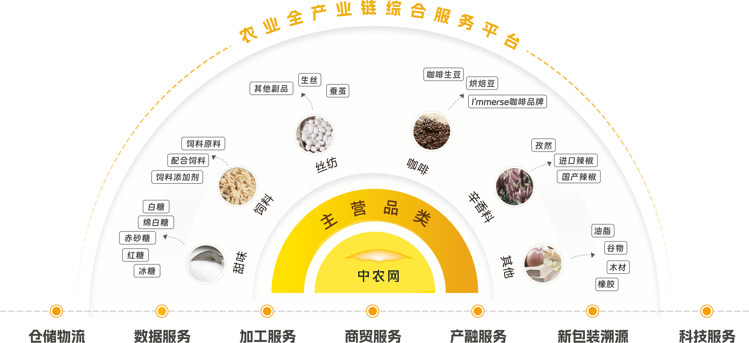 中农网是农业全产业链综合服务平台,,业务涉及甜味、、饲料、、、、丝纺、、、、香辛料、、、、咖啡、、、、橡胶等多元化交易品类,,,为产业上下游的生产者、、、加工企业、、供应商、、、终端商提供全流通解决方案,,服务网络遍布中国31个省份,,,184个城市及海外9个国家。。平台拥有600 多家物流服务商和 2180 多个合作仓储网点,,,,连续4年GMV超千亿规模,,,已服务大中型及小微企业累计超17万。。